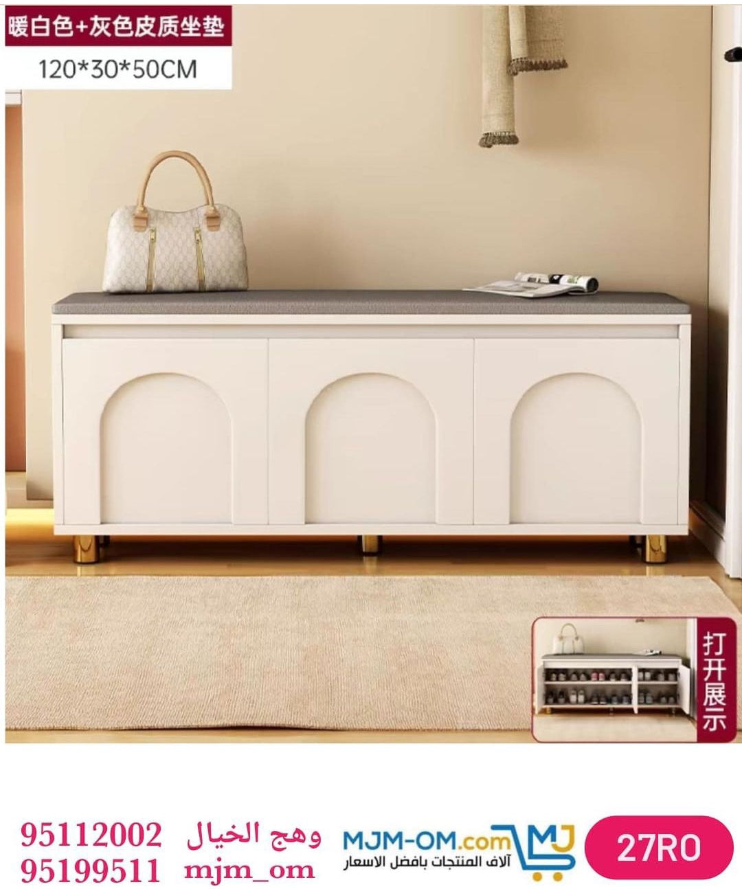 توفر رفين أو أكثر لتنظيم الأحذية بشكل عملي، بينما يسمح المقعد العلوي المتين بالجلوس بثبات وراحة عند خلع أو ارتداء الحذاء. مصنوعة من مواد عالية الجودة وتضفي لمسة أنيقة وعصرية على أي مساحة.
