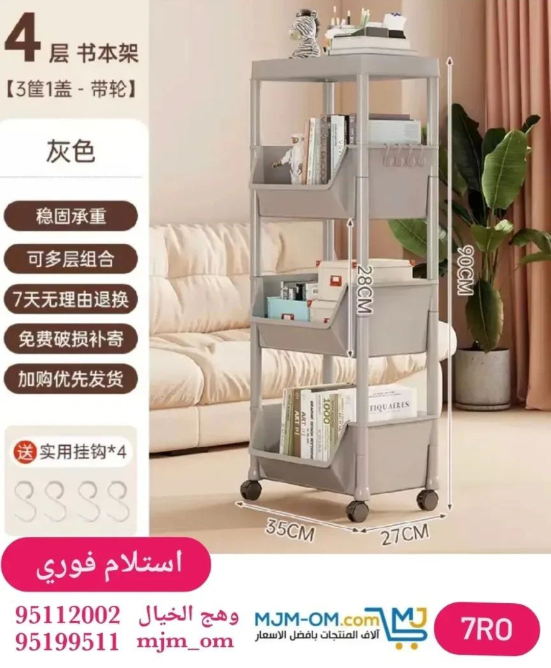 4 طبقات، عجلات متحركة، تصميم قابل للإزالة، تنظيم سهل، نقل مريح، متينة.