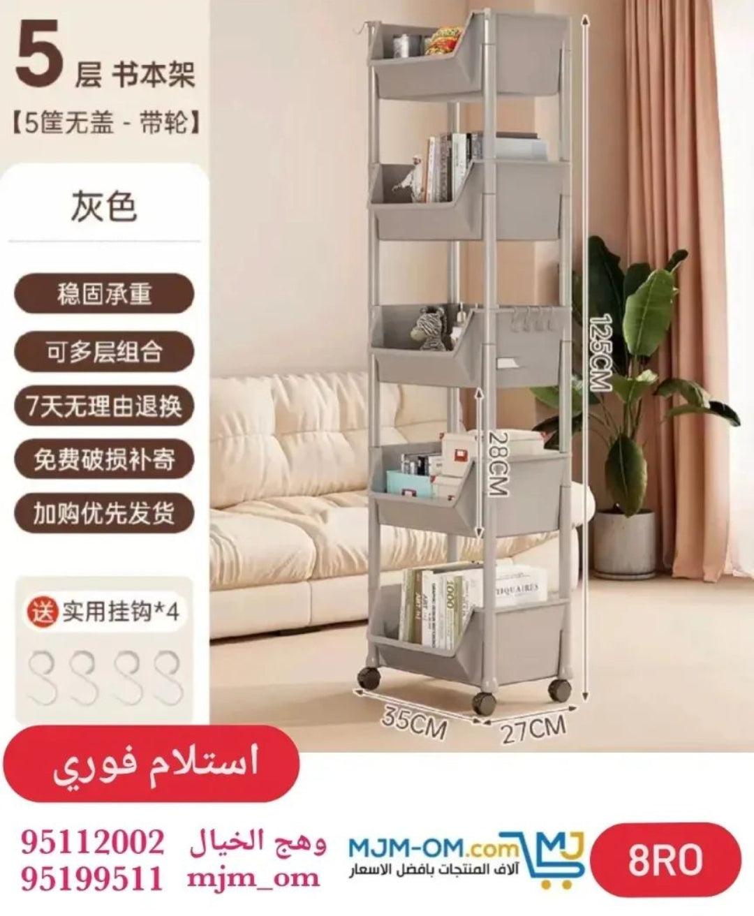 5 طبقات، عجلات متحركة، قابلة للإزالة، تخزين سهل، نقل مريح، متينة، عملية.