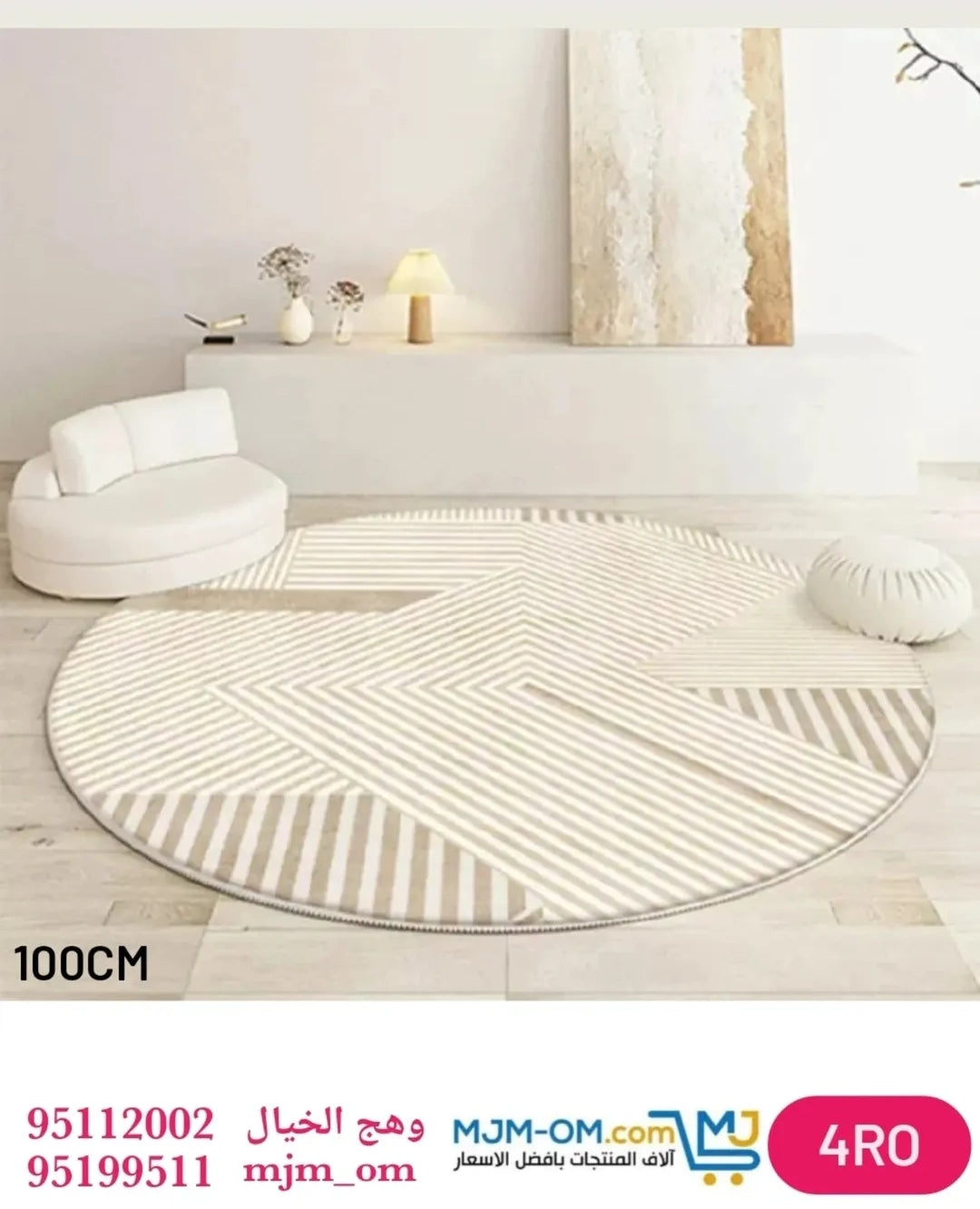 زولية دائرية بقطر 100 سم، مصنوعة من خامة قطيفة ناعمة تضيف لمسة دافئة وأنيقة لأي غرفة. تصميم عصري بخطوط هندسية جذابة يضفي مظهرًا مميزًا على الأرضيات. مثالية لغرف المعيشة، الجلوس، أو زوايا القراءة، كما أنها سهلة التنظيف وخفيفة الوزن.