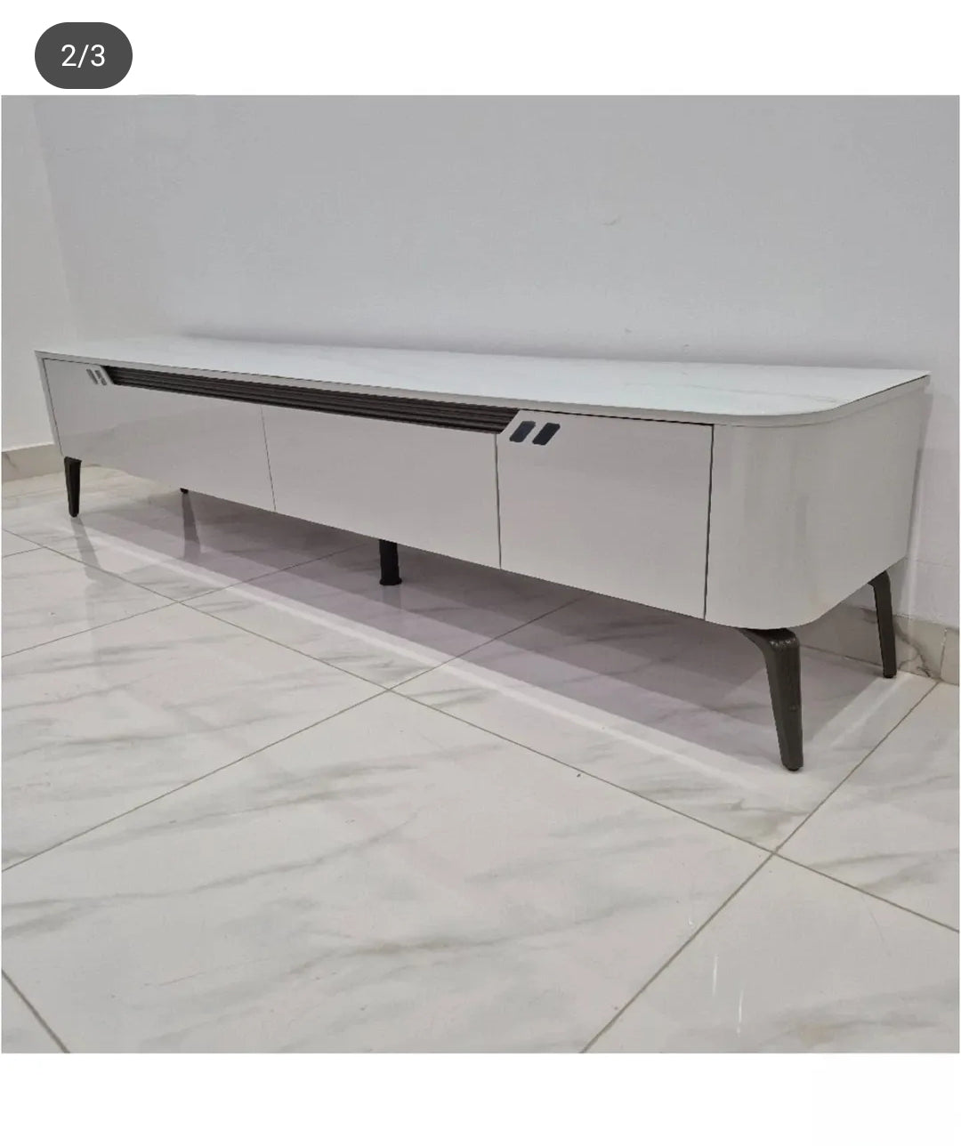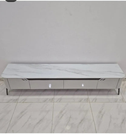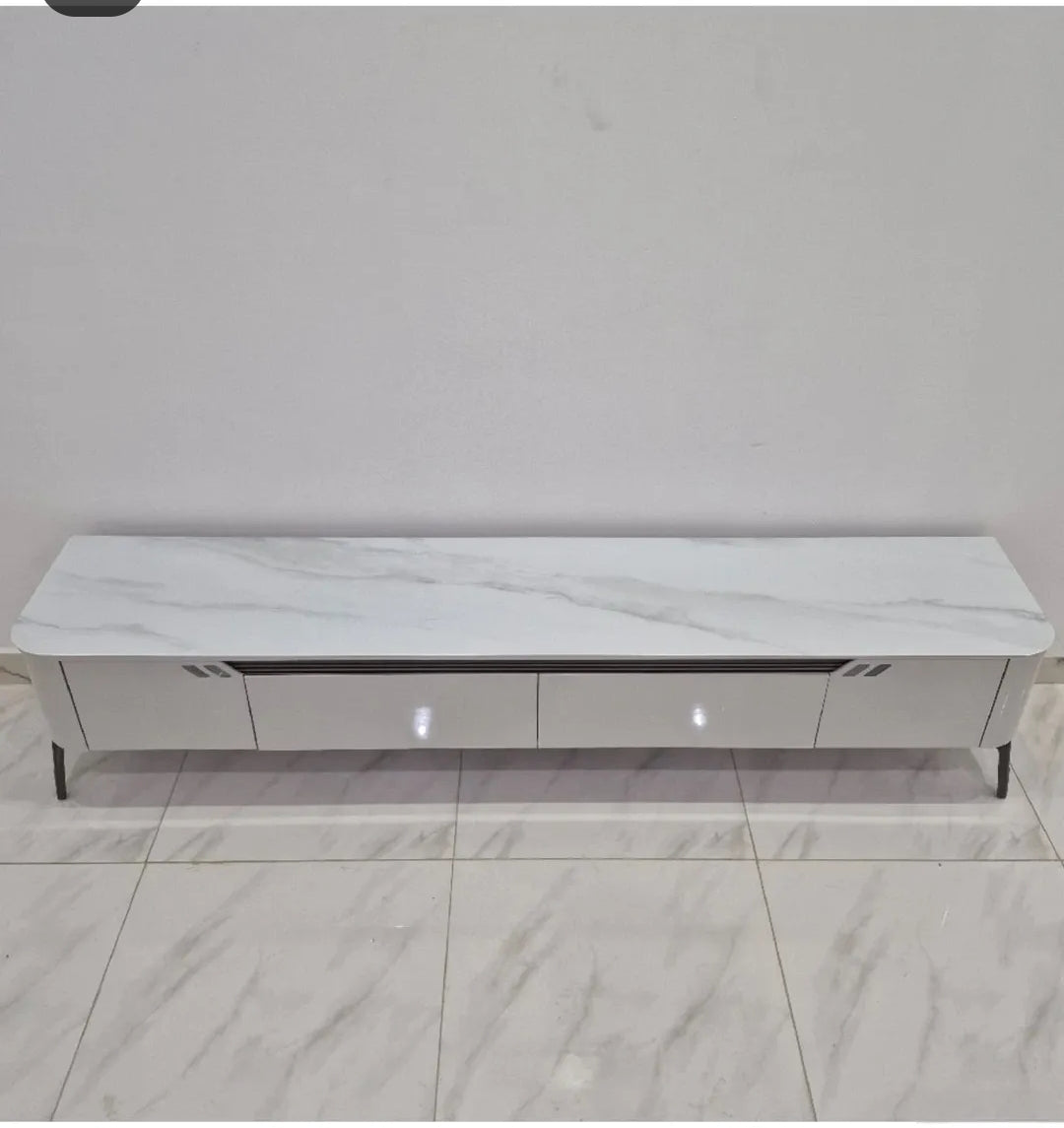 طاولة تلفزيون خشبية بتصميم عصري أنيق، مع سطح زجاجي مقاوم للخدش ووحدة أدراج متكاملة توفر مساحة تخزين عملية للمستلزمات. مثالية لإضافة لمسة فاخرة وأنيقة لديكور منزلك. تصميم عصري يناسب جميع الأذواق.