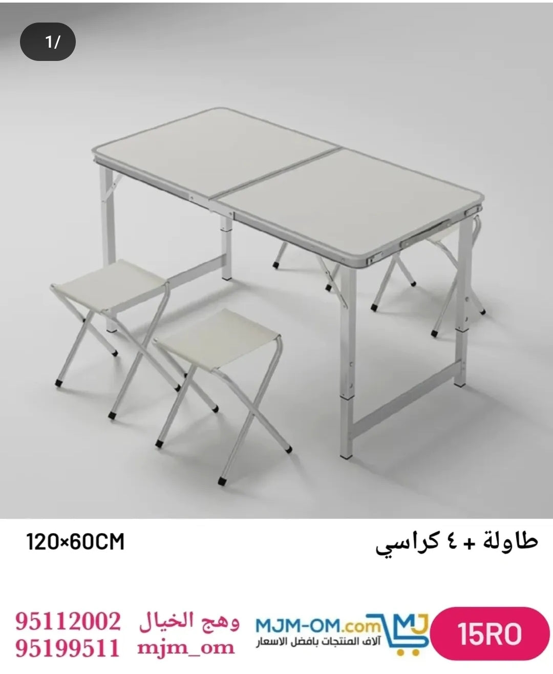 طاولة عملية قابلة للطي بمقاس 120×60 سم، تأتي مع 4 كراسي قابلة للطي لسهولة الحمل والتخزين. مثالية للرحلات، التخييم، الحدائق، أو الاستخدام في المساحات الصغيرة. مصنوعة من مواد خفيفة ومتينة لتمنحك راحة وسهولة في التنقل والاستخدام في أي مكان.