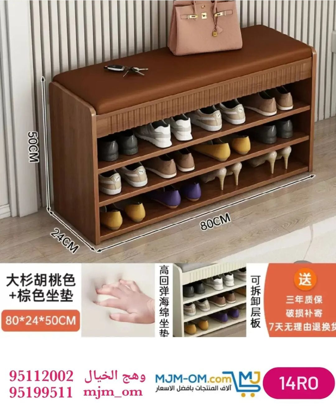 كبت عملي مع مقعد جلدي مبطن يوفر راحة وتنظيم مثالي للمدخل أو الغرفة.