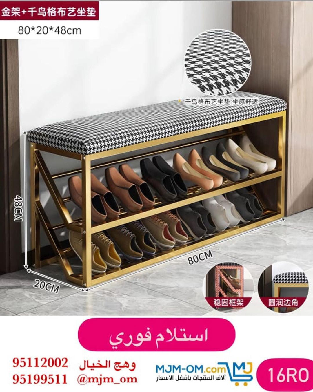 مصنوع من معدن عالي الجودة مع تفاصيل تصميم متقنة تعزز من جمالية القطعة وتوفر تجربة جلوس مريحة وعملية، مثالي لتنظيم الأحذية وإضافة لمسة ديكور راقية وعصرية لأي مساحة داخلية.