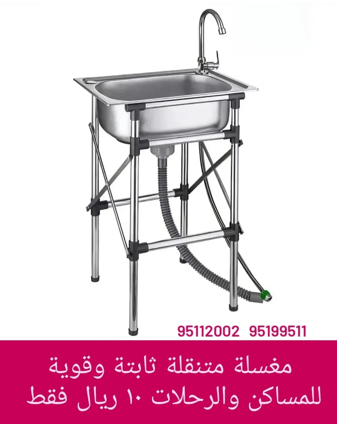 مغسلة متنقلة ثابتة وقوية مع حنفية وتوصيلات مدمجة، مثالية للمساكن والرحلات. تصميم عملي وعصري يوفر لك الراحة في أي مكان. أسعار تنافسية مع جودة عالية.