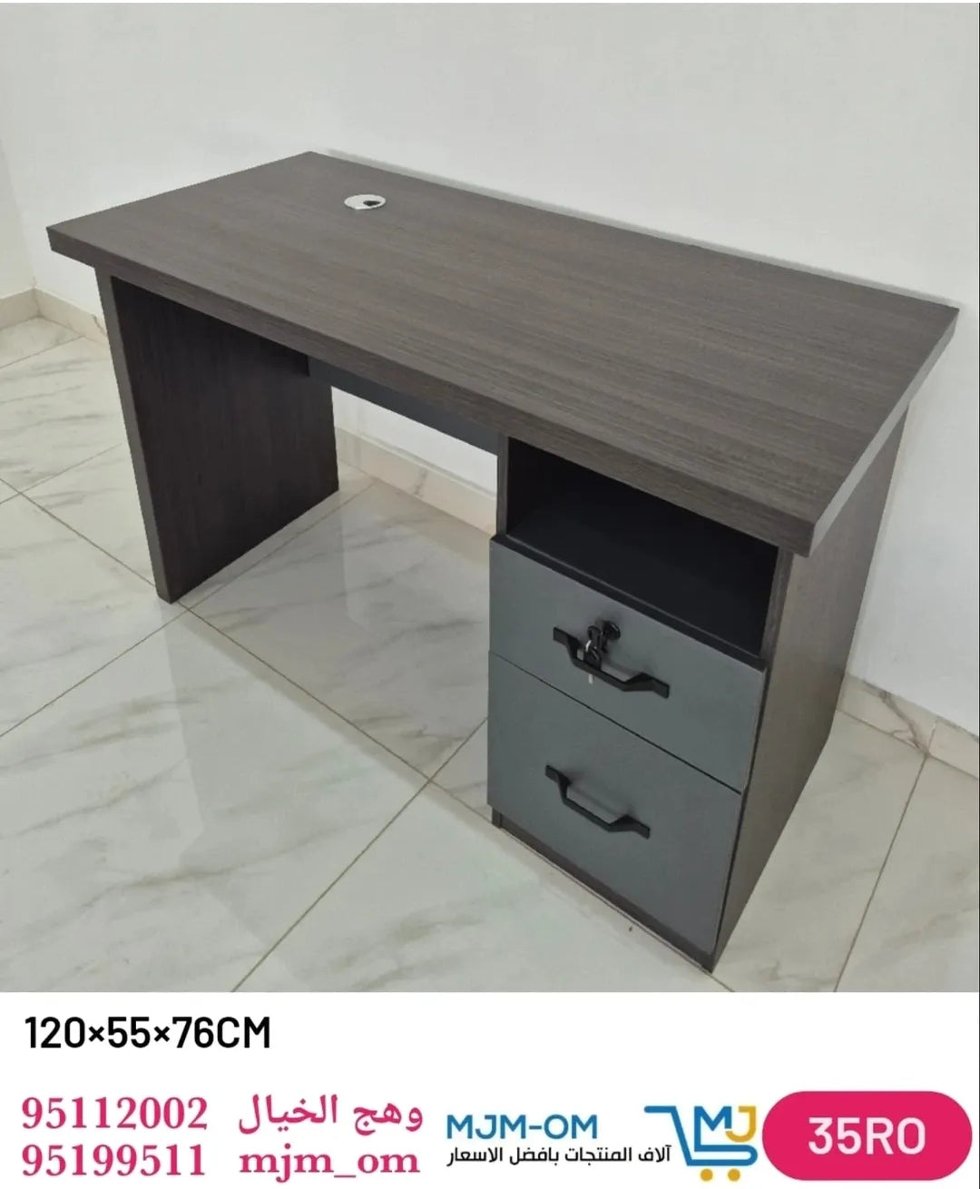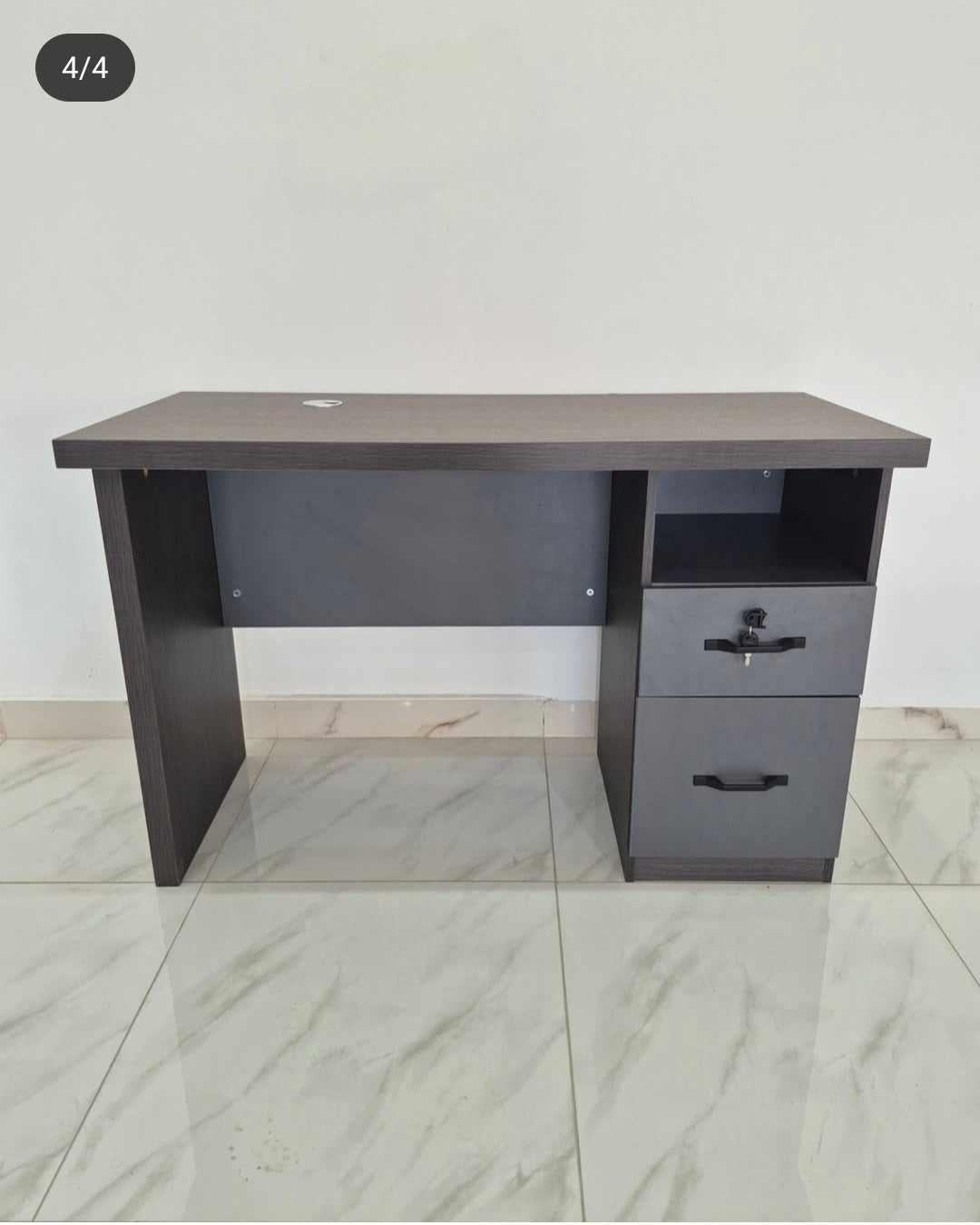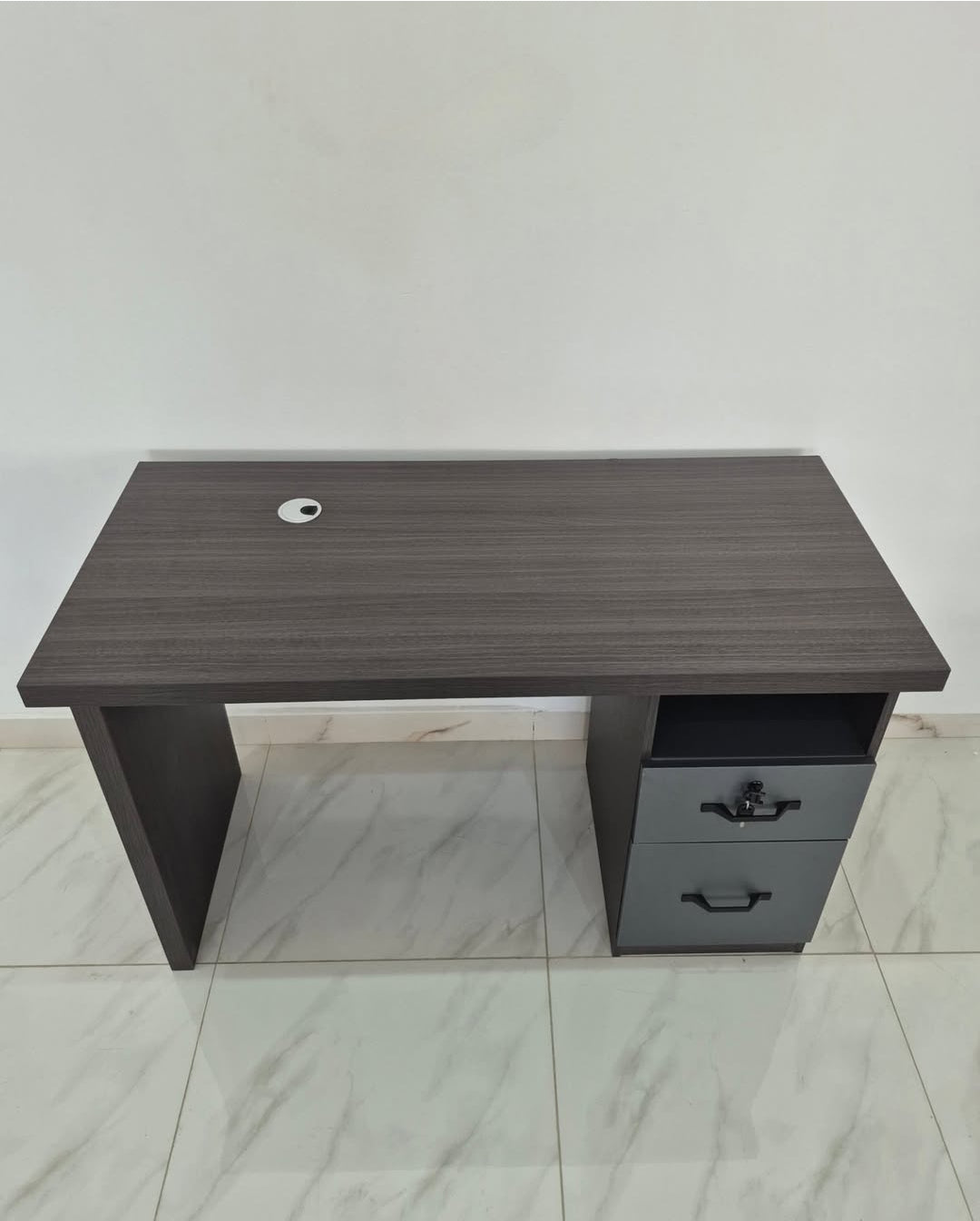 مكتب كمبيوتر خشبي حديث بتصميم بسيط وأنيق، مع أدراج متحركة لتخزين وتنظيم الأغراض. مصنوع من مواد عالية الجودة ويتميز بمساحة عمل واسعة مع فتحة للكابلات لتسهيل الاستخدام. مثالي للمكتب أو غرفة العمل.