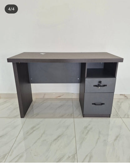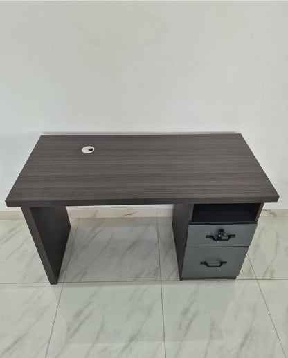 Modern wooden computer desk with a sleek and simple design, featuring movable drawers for storage and organization. Made with high-quality materials and offering a spacious work area with a cable management hole for easy use. Perfect for offices or home workspaces.